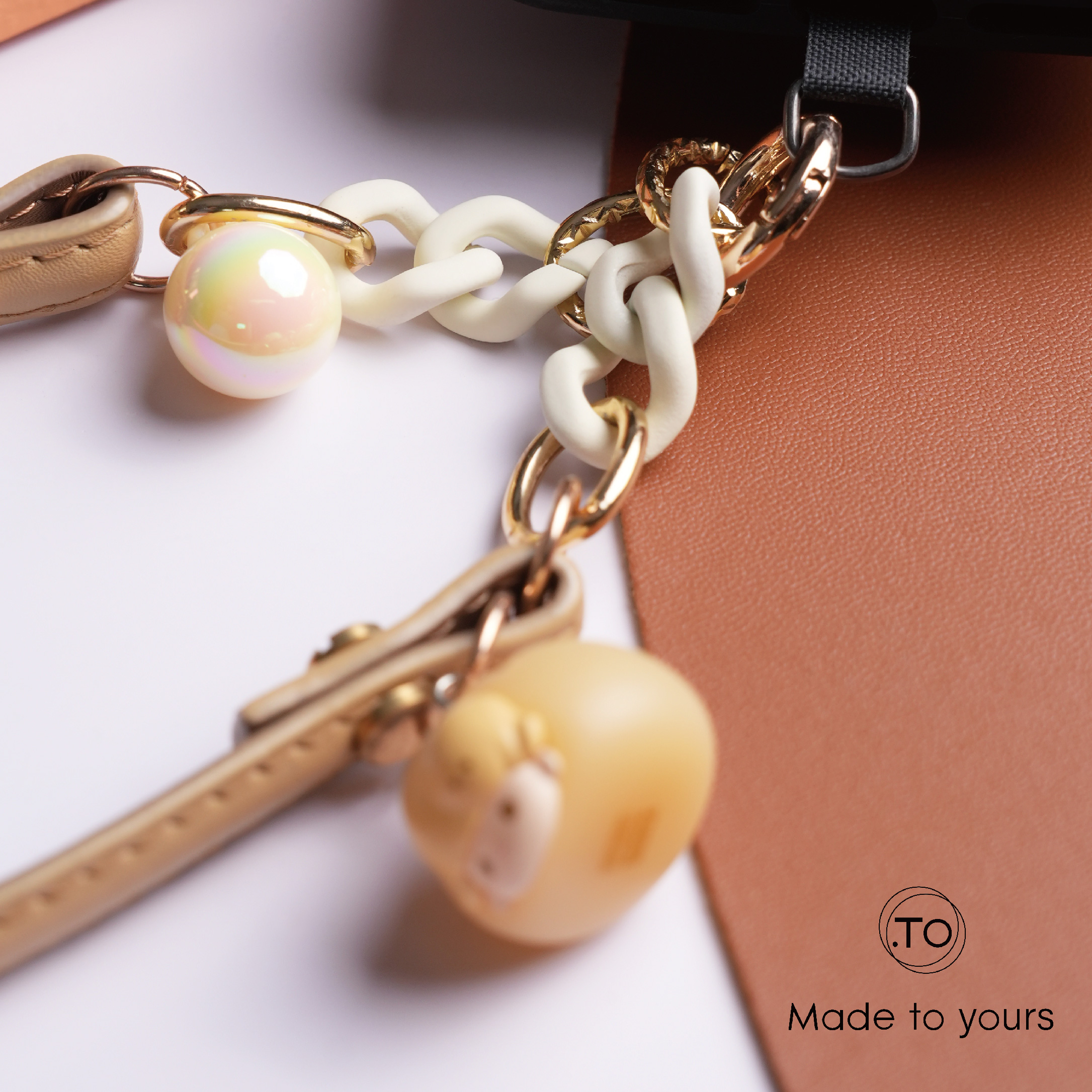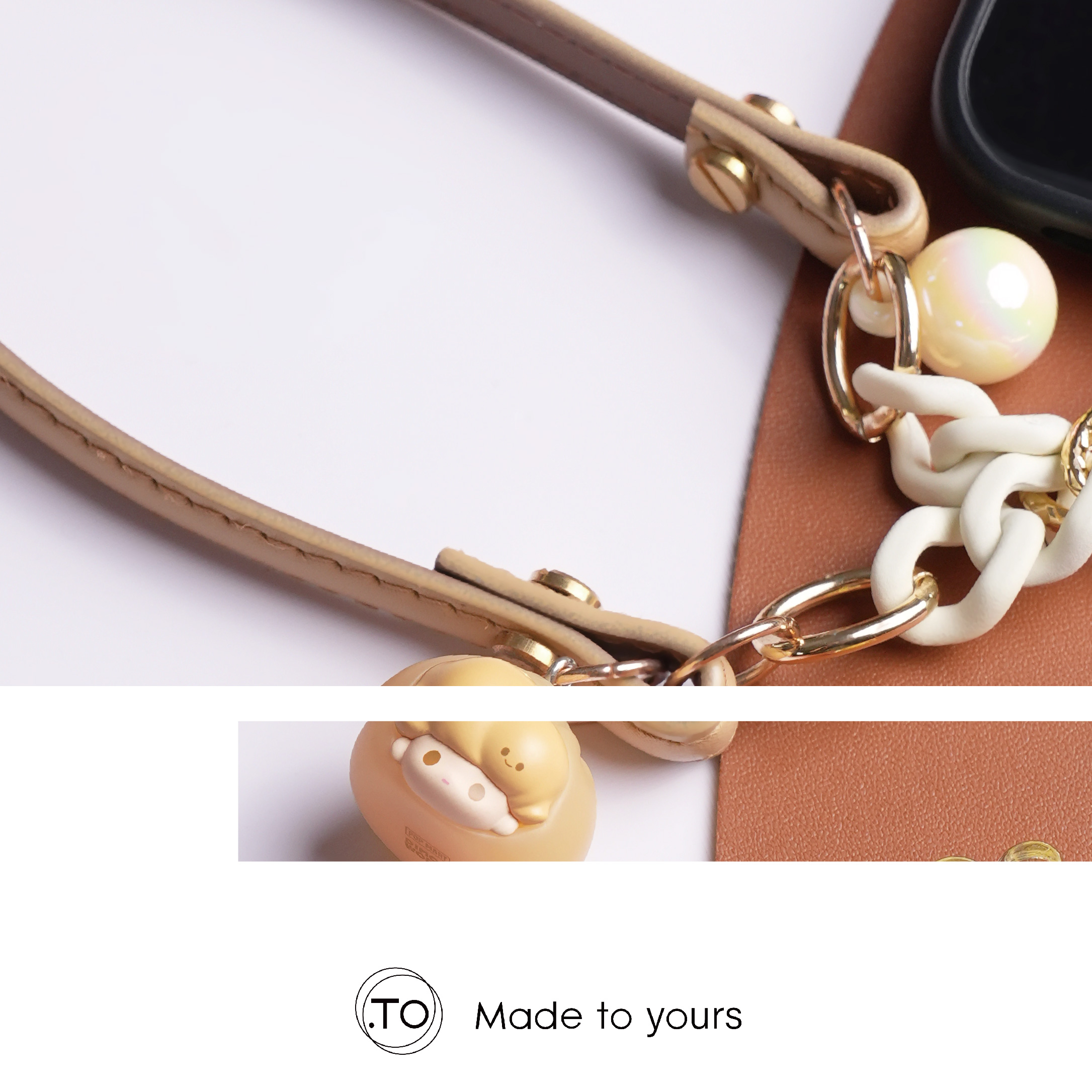 採用真皮手繩、搭配啞光磨砂橡皮漆鏈節,呈現柔霧質感與獨特色彩層次。