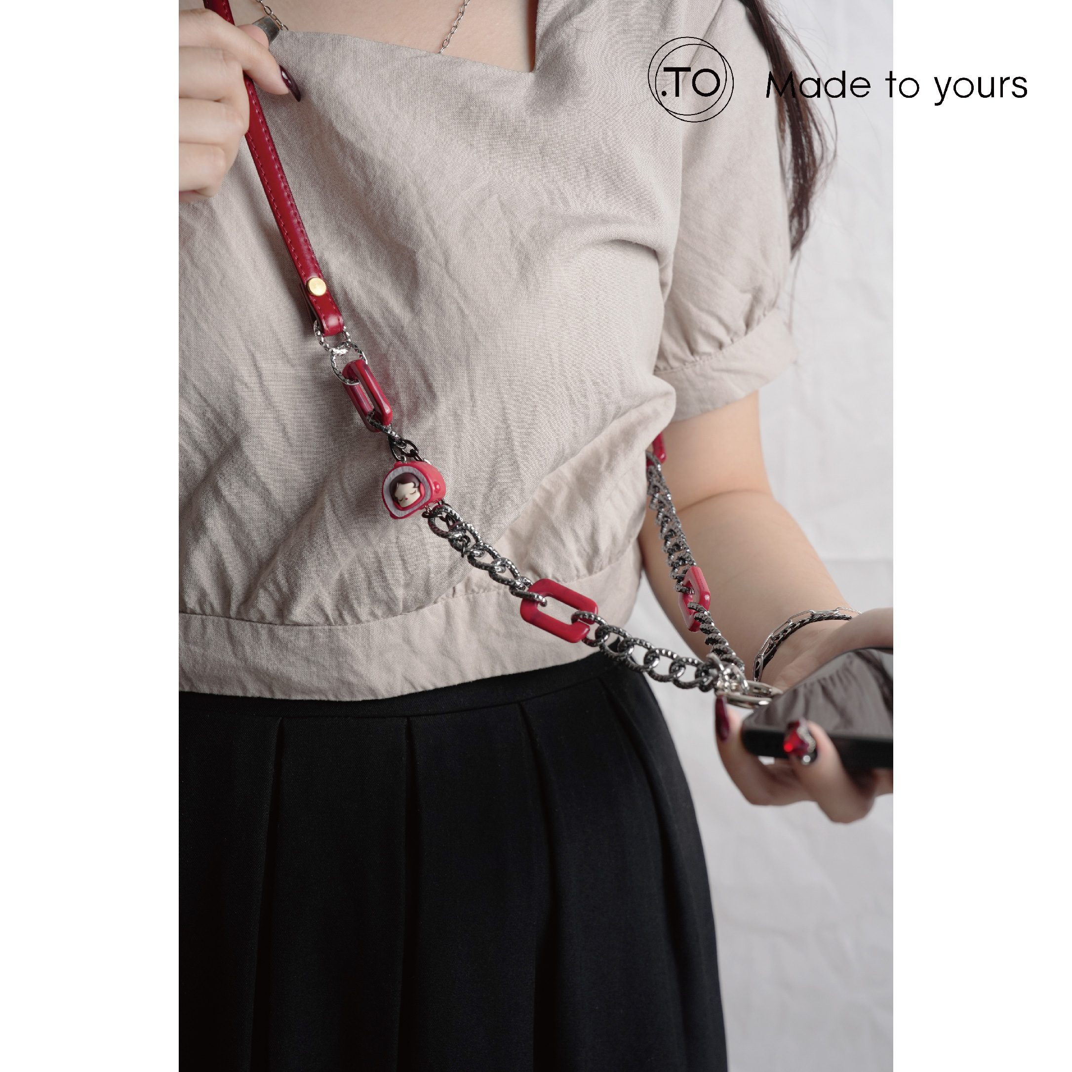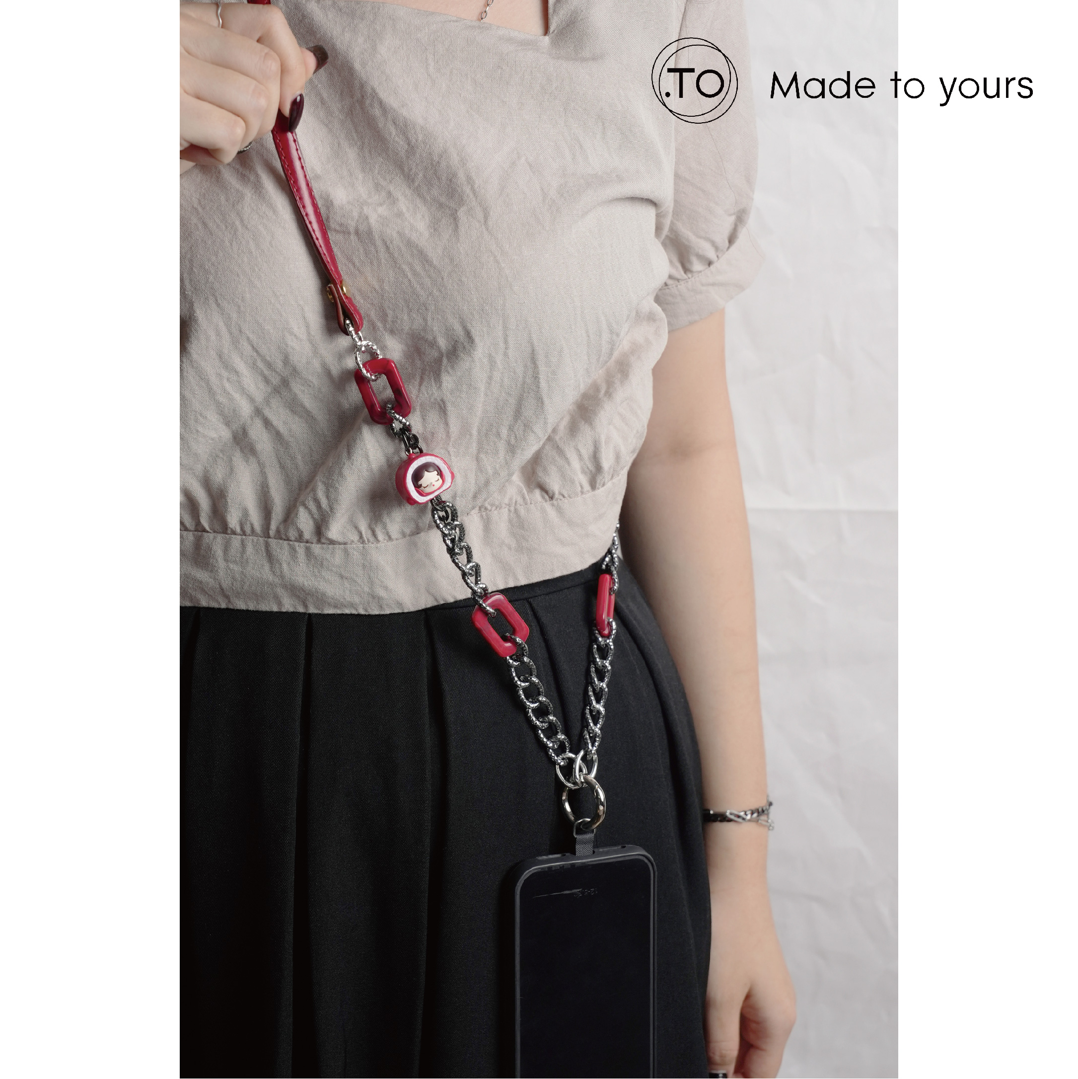 真皮手機掛繩|sp紅絲絨奶油捲|泡泡瑪特 正版萌粒 POP BEAN 手作手機鏈條掛繩背帶