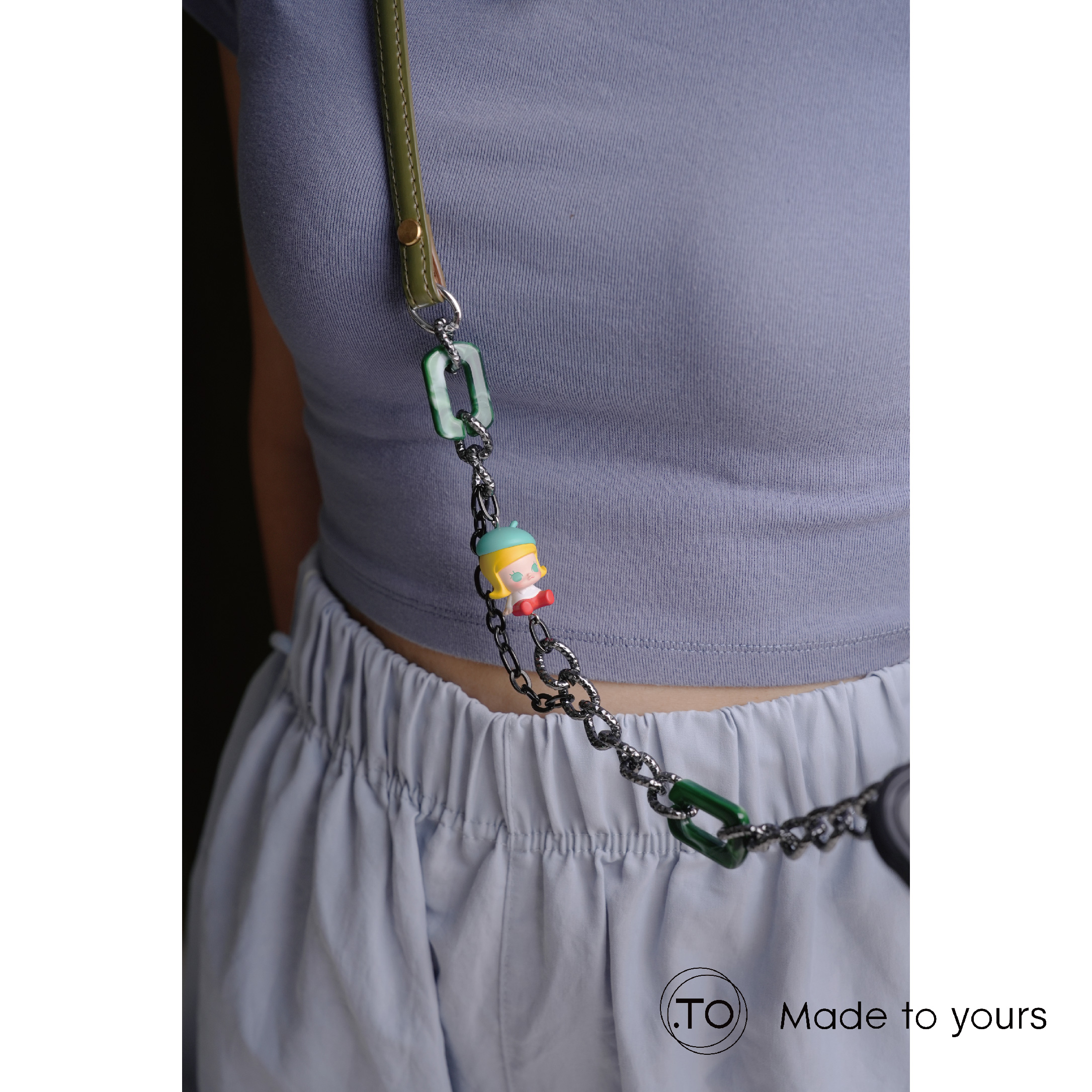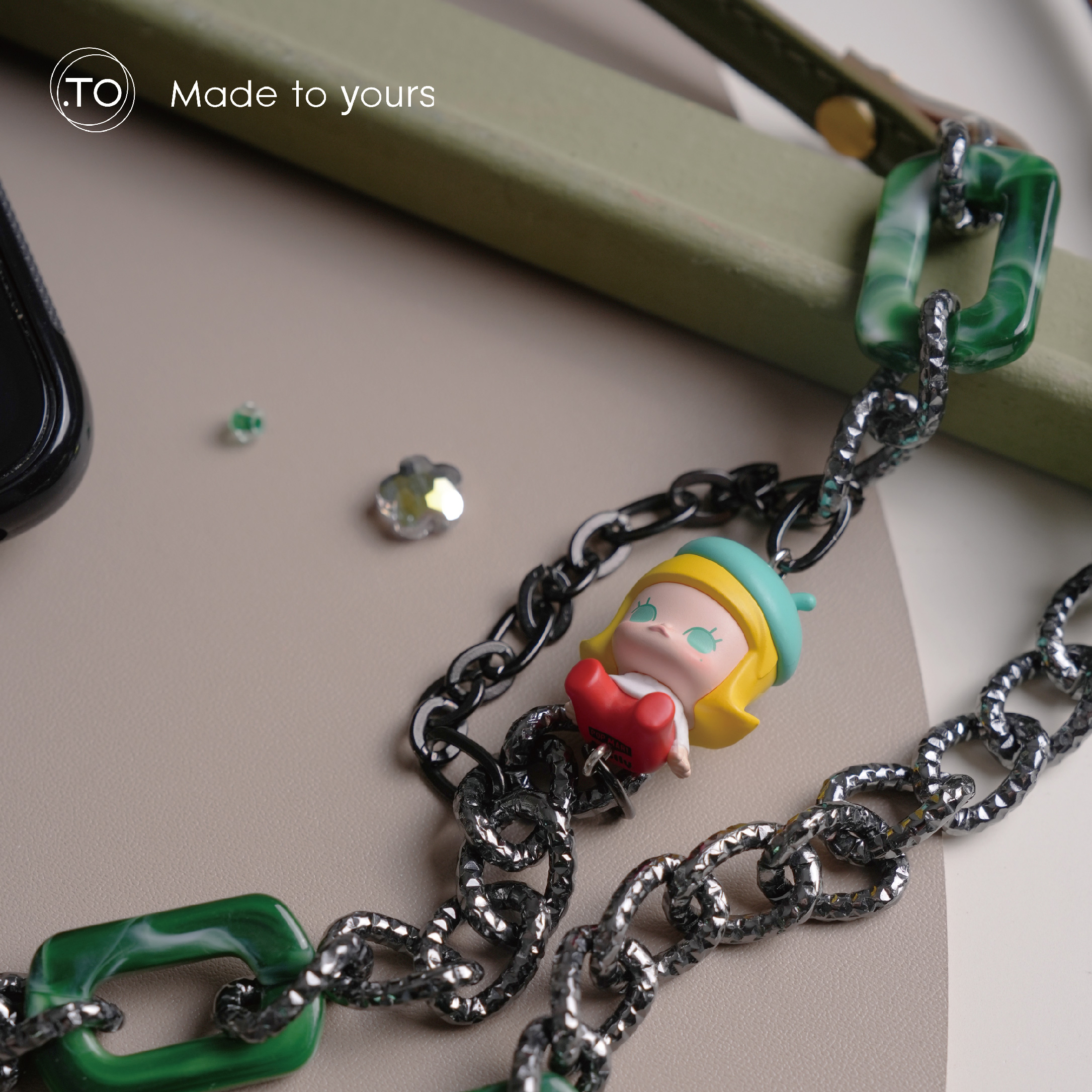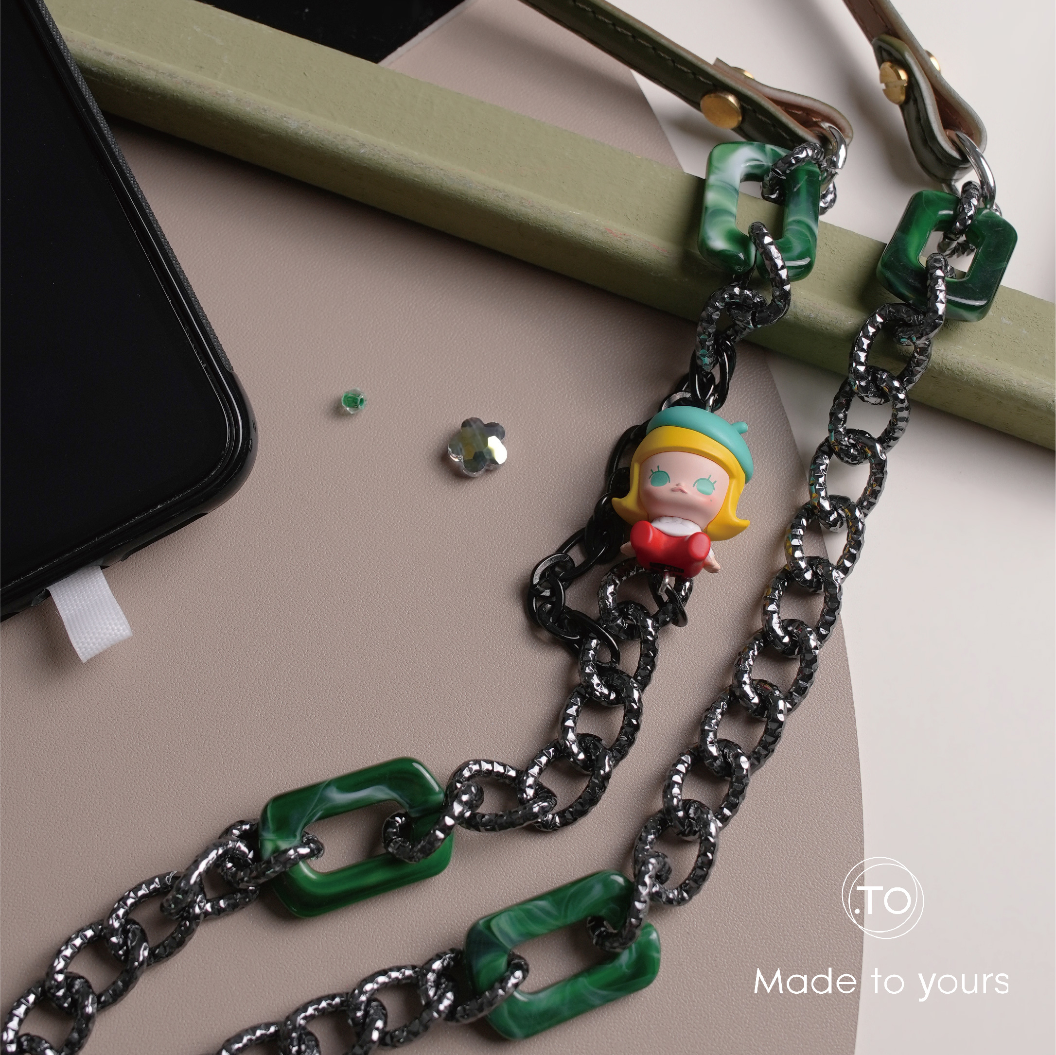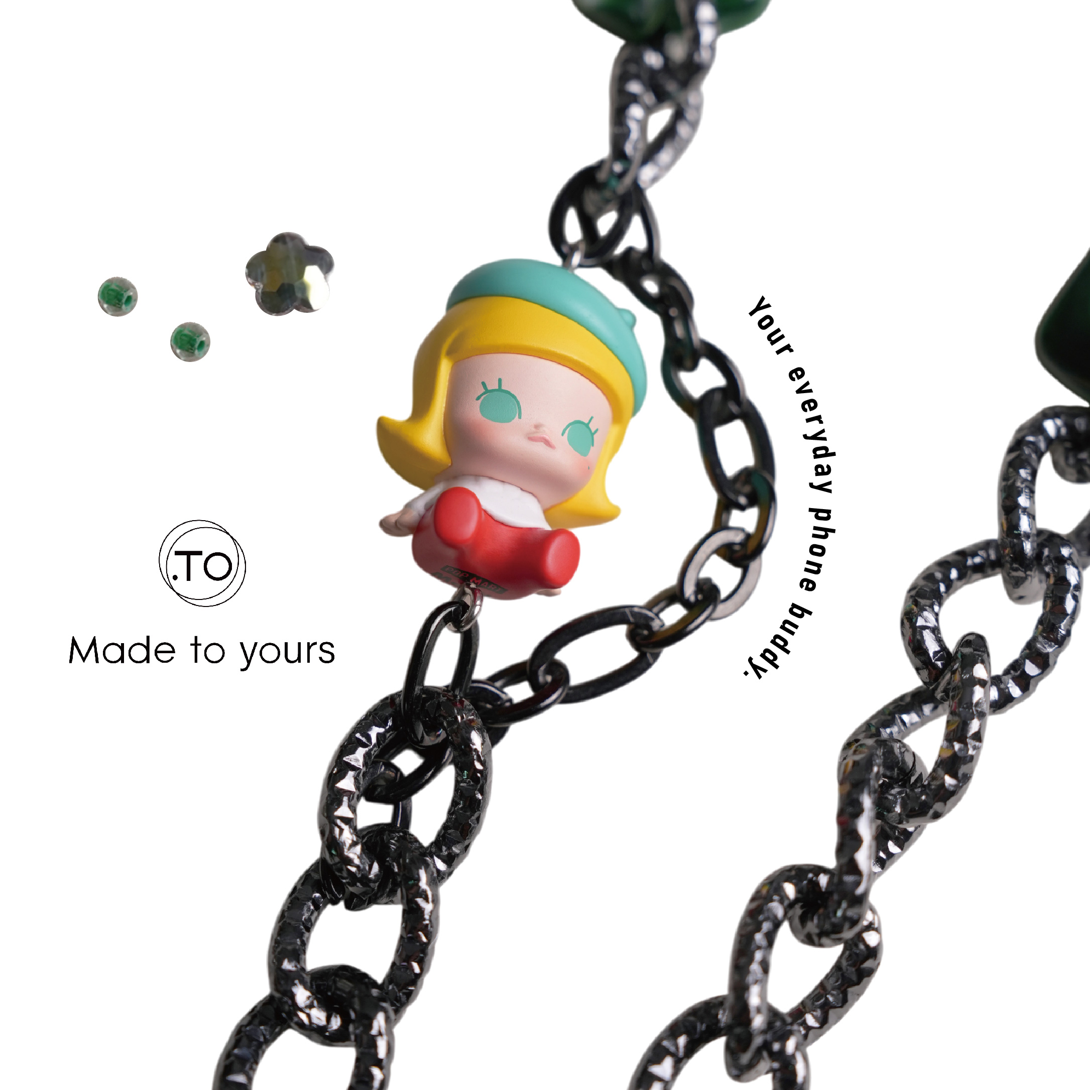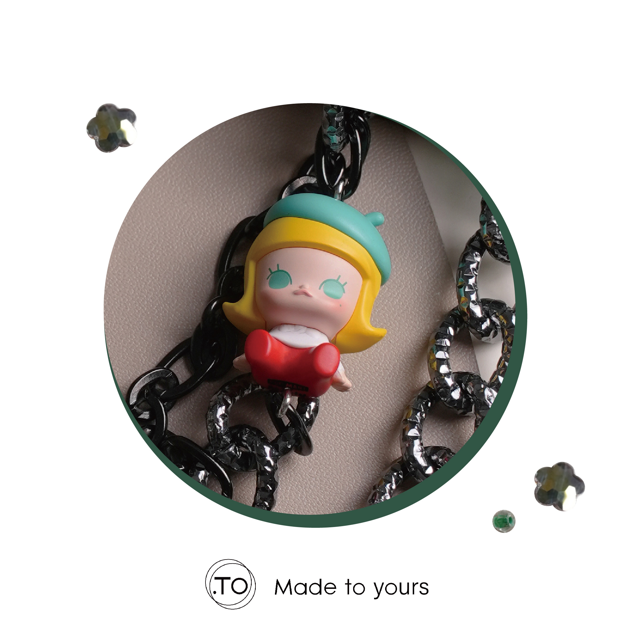 真皮手機掛繩|MOLLY小畫家|泡泡瑪特 正版萌粒 POP BEAN 手作手機鏈條掛繩背帶